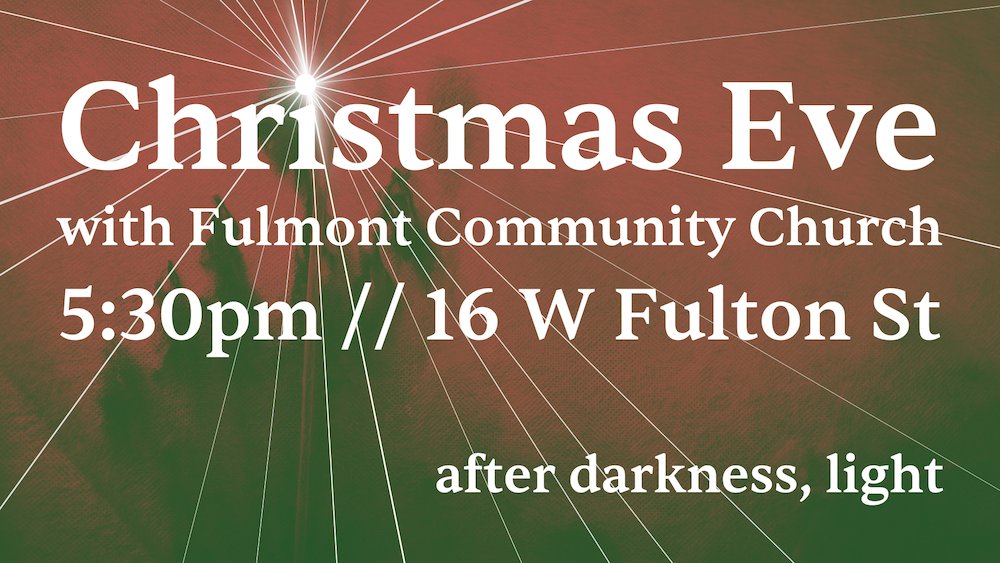 We will have an evening service on December 24th at 5:30pm. We will sing together, light candles, pray together, hear the wonderful stories we have in scripture telling of this beautiful and needed arrival (with a time for kids to do this as well), and more.